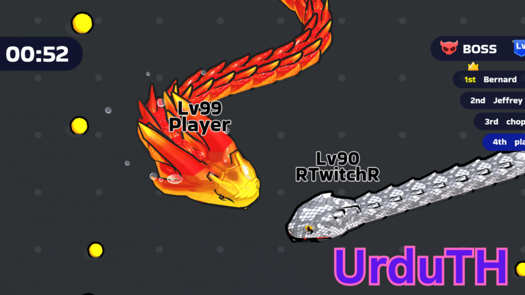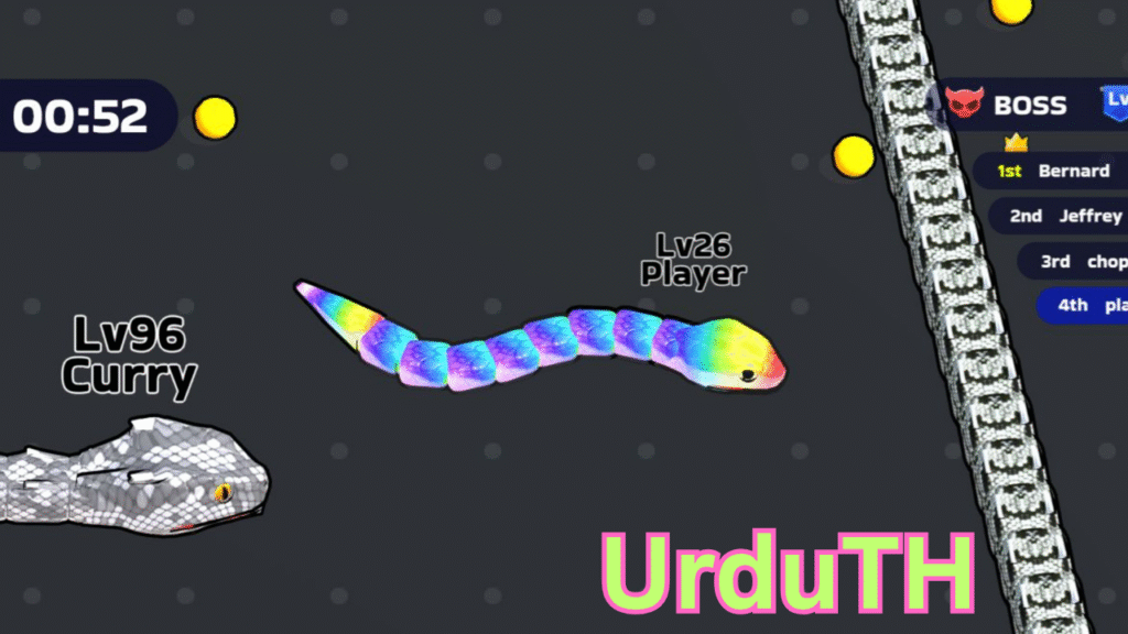 - خوراک اکٹھی کریں: راستے میں پھینکے گئے پوائنٹس یا دیگر سانپوں کو کھا کر لمبائی بڑھائیں۔